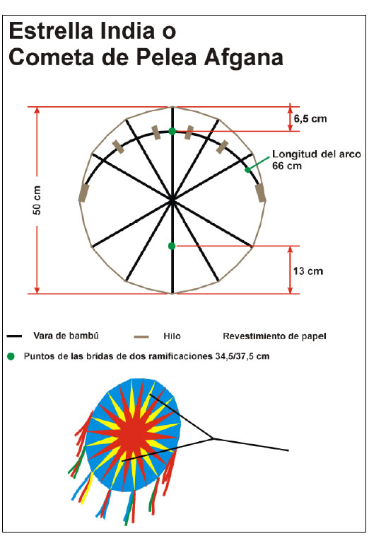 Estas cometas se construyen de bambú y papel de seda o similar.